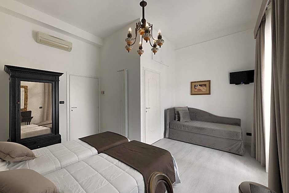 Room with attached bathroom with parquet floors. Offers free Wi-Fi, air conditioning, and a flat-screen TV with Italian digital channels.